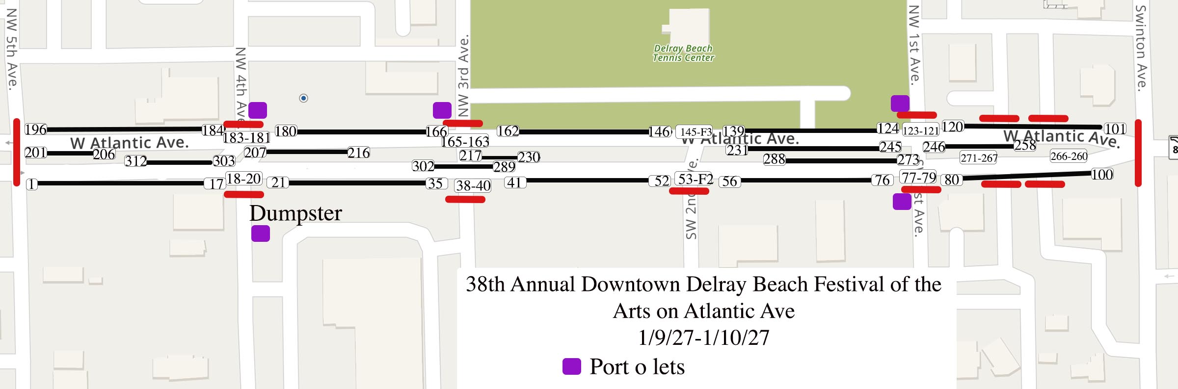 The Development Services Management Group (DSMG) is asked to make a recommendation to the City Commission regarding the Impact Event known as 38th Annual Downtown Delray Beach Festival of the Arts to be held on Saturday and Sunday, January 9-10, 2027. This event is deemed an Impact Event due to a requested closure of the major roadway of West Atlantic Avenue from NW 5th Avenue to Swinton Avenue.