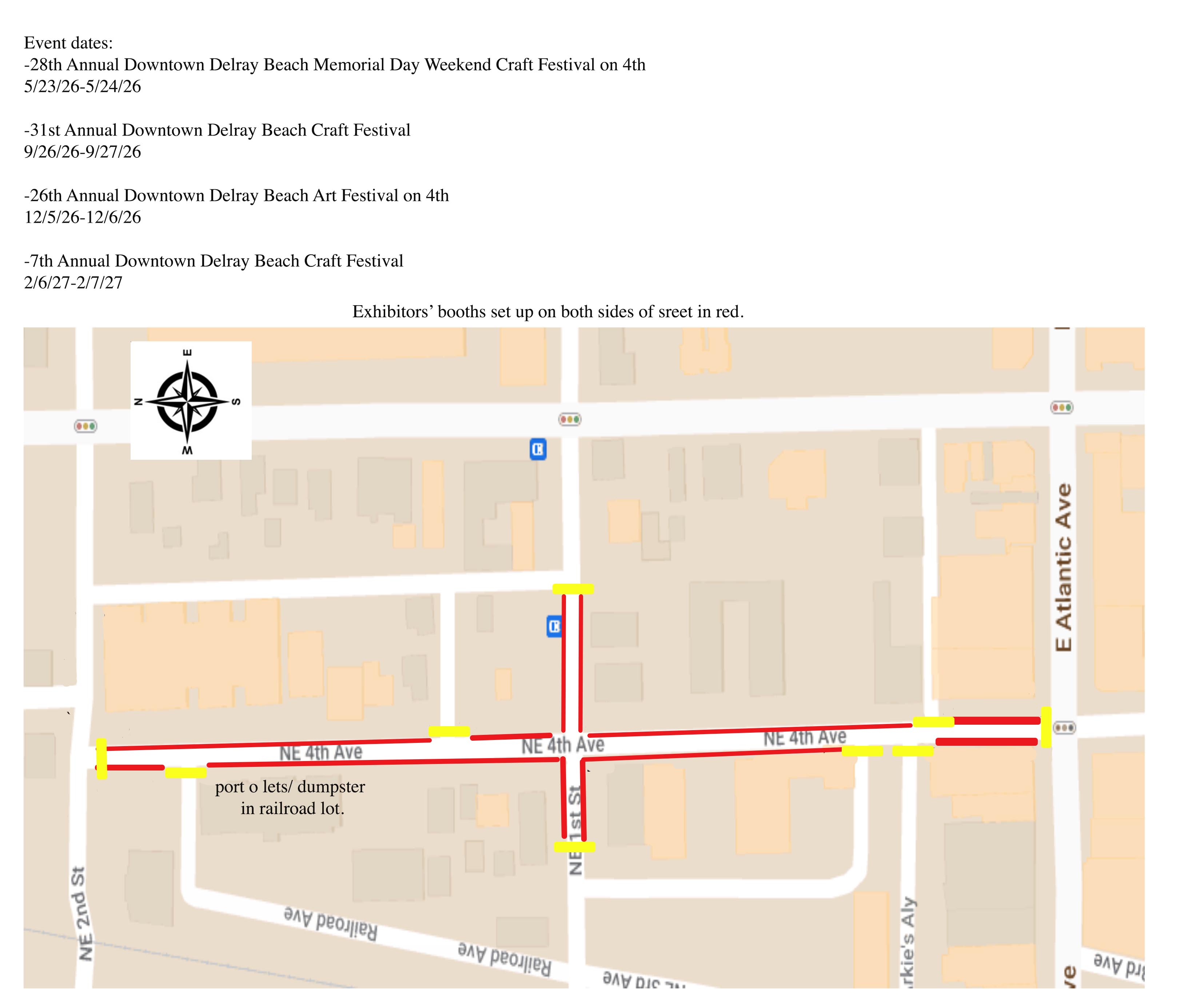 Howard Alan Events submitted a Special Event Application on February 3, 2026, for the 28th Annual Downtown Delray Beach Memorial Day Weekend Craft Festival on 4th. This event has been held annually for the past 27 years in downtown Delray Beach. The craft festival features local and national artists displaying and selling their handmade arts and crafts. This event draws about 2,000 people for the weekend, and has had an average of 80 vendors. Howard Alan Events is looking to close NE 4th Avenue between E Atlantic Avenue and NE 2nd Street as well as NE 1st Street on the east and west side to the alley ways. The event will take place from 10:00am - 5:00pm on both Saturday and Sunday. There will be food vendors who will be cooking on site, as well as the art and craft merchandise vendors. This event moved to 4th Avenue in 2025 from the Tennis Center. There has not been any issues related to this event in the past 2 years.